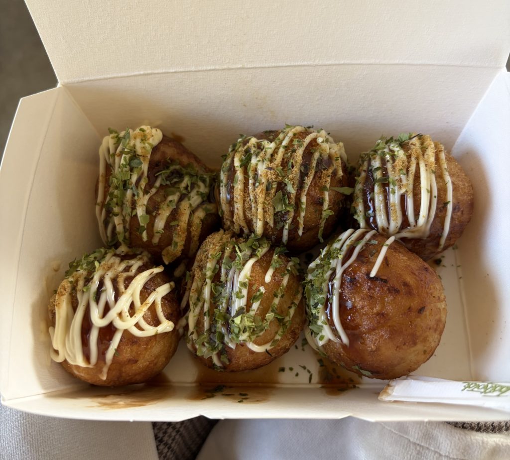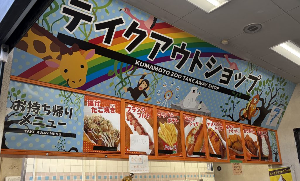 遊園地ゾーンの近くにはレストランとテイクアウトショップがあるため、園内でお昼ご飯を食べることができます♩レストランにはうどんやお子様ランチなどのメニューがあります。テイクアウトショップにはポテトやたこ焼きなど軽食が中心に販売されていました!私たちは、テイクアウトショップでいくつか買って、すぐ近く中央ステージのベンチに座って食べました(*^^*)中央ステージにはベンチがずらっと並んでいるので、混雑している休日でも座れます!
